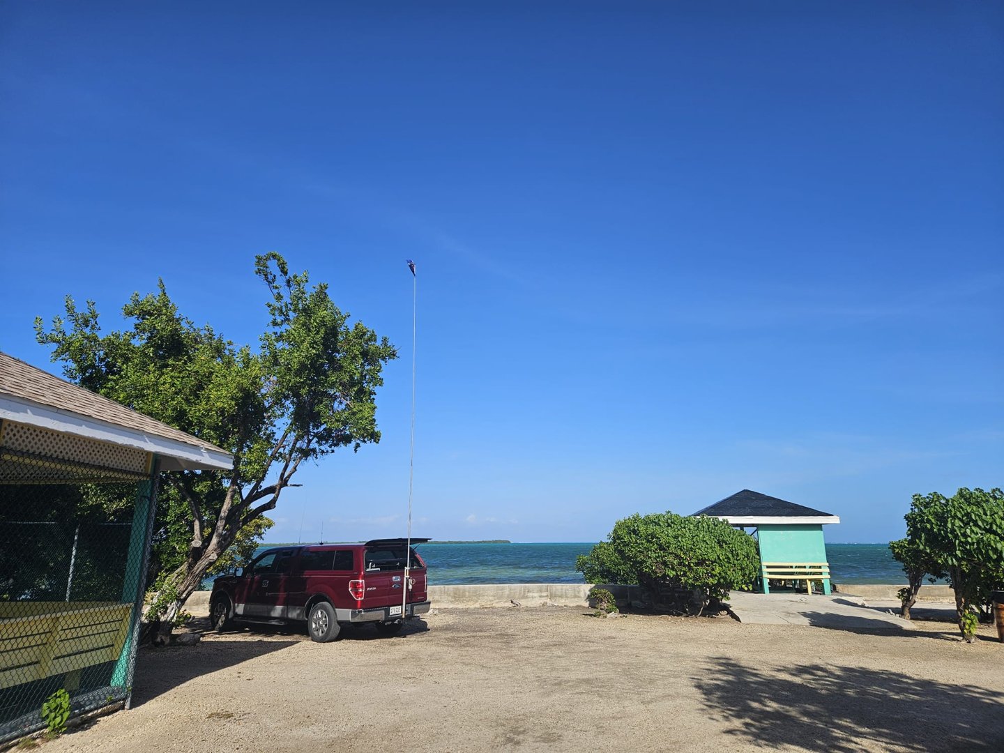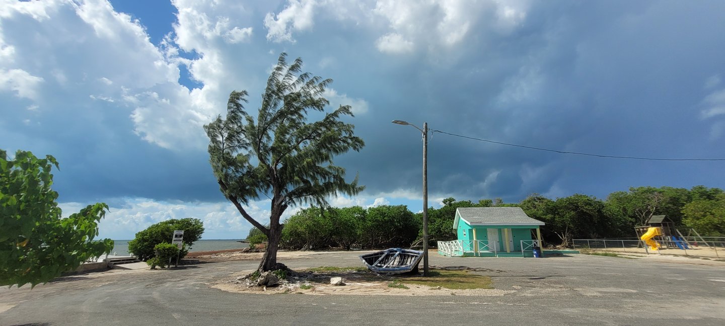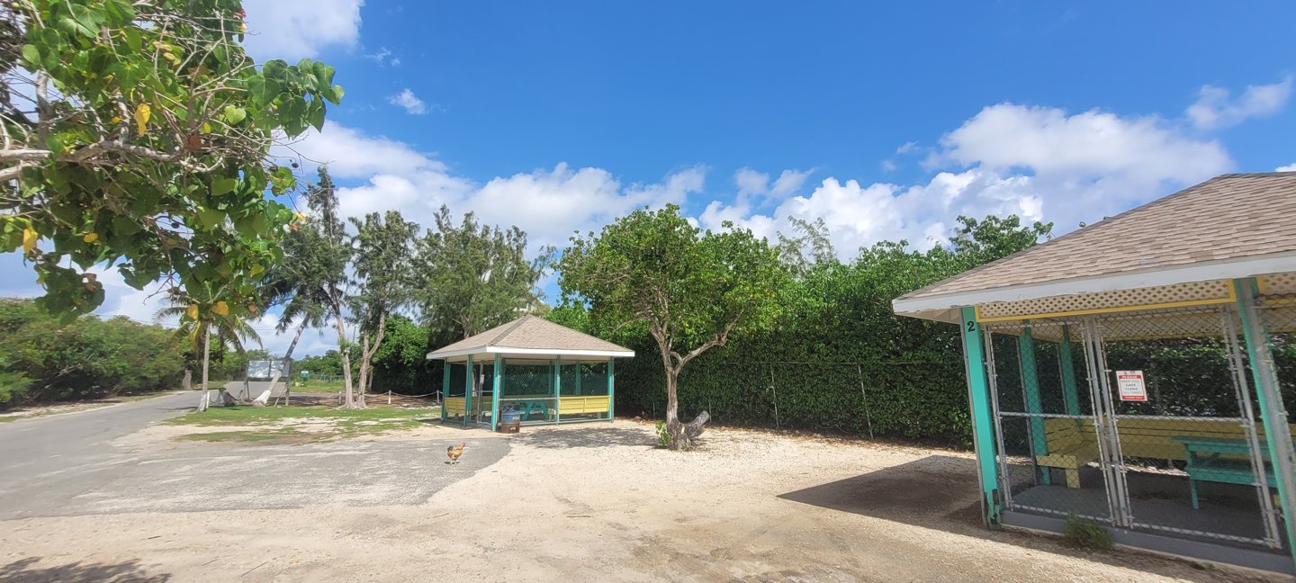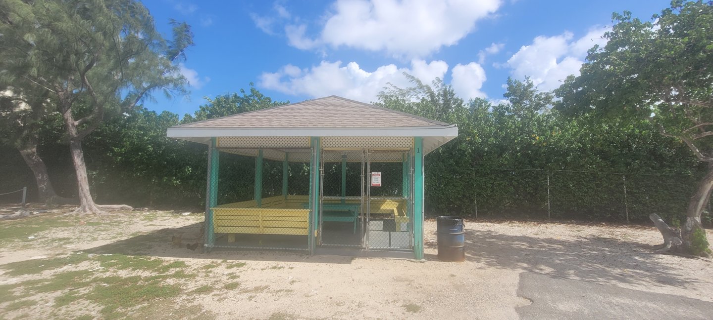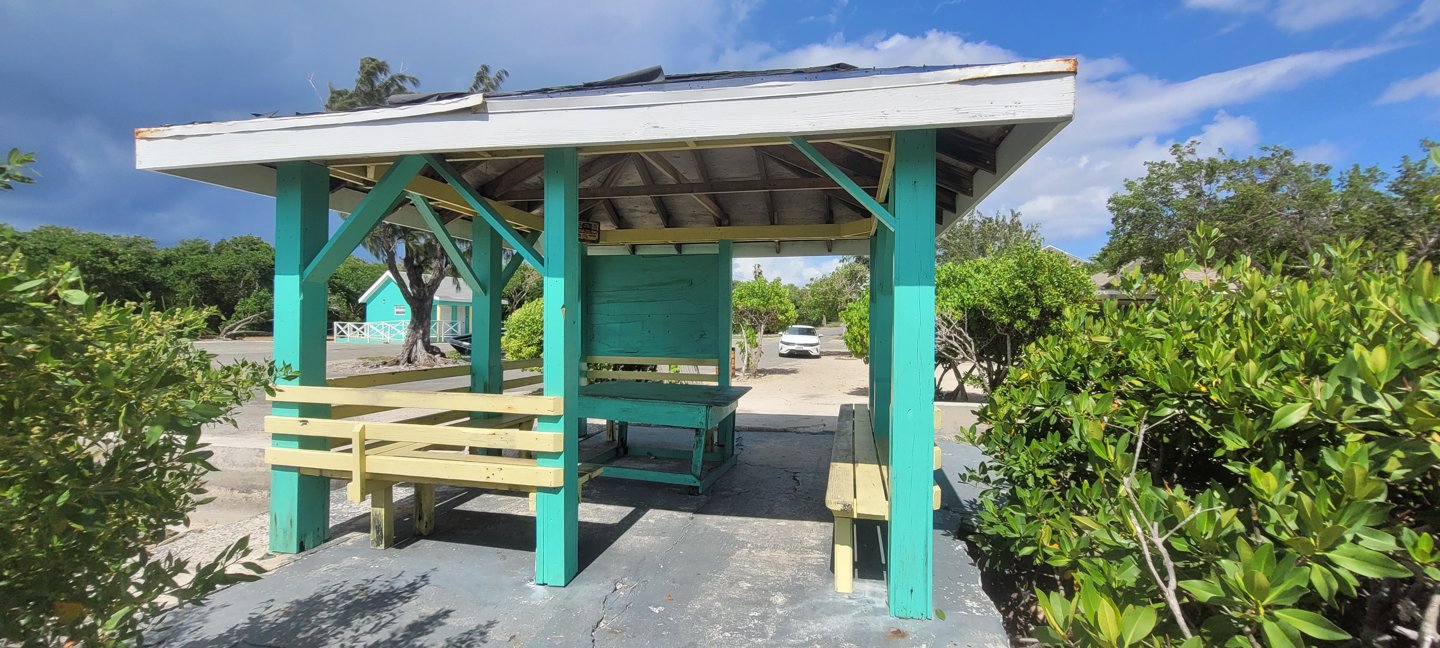 Plenty parking, Shade, trees, Covered Cabanas with Picnic Tables, Bring food and drink, Public Restroom Facilities, very close to Saltwater. Building may provide shelter, but check for access to power and noise from the playground.