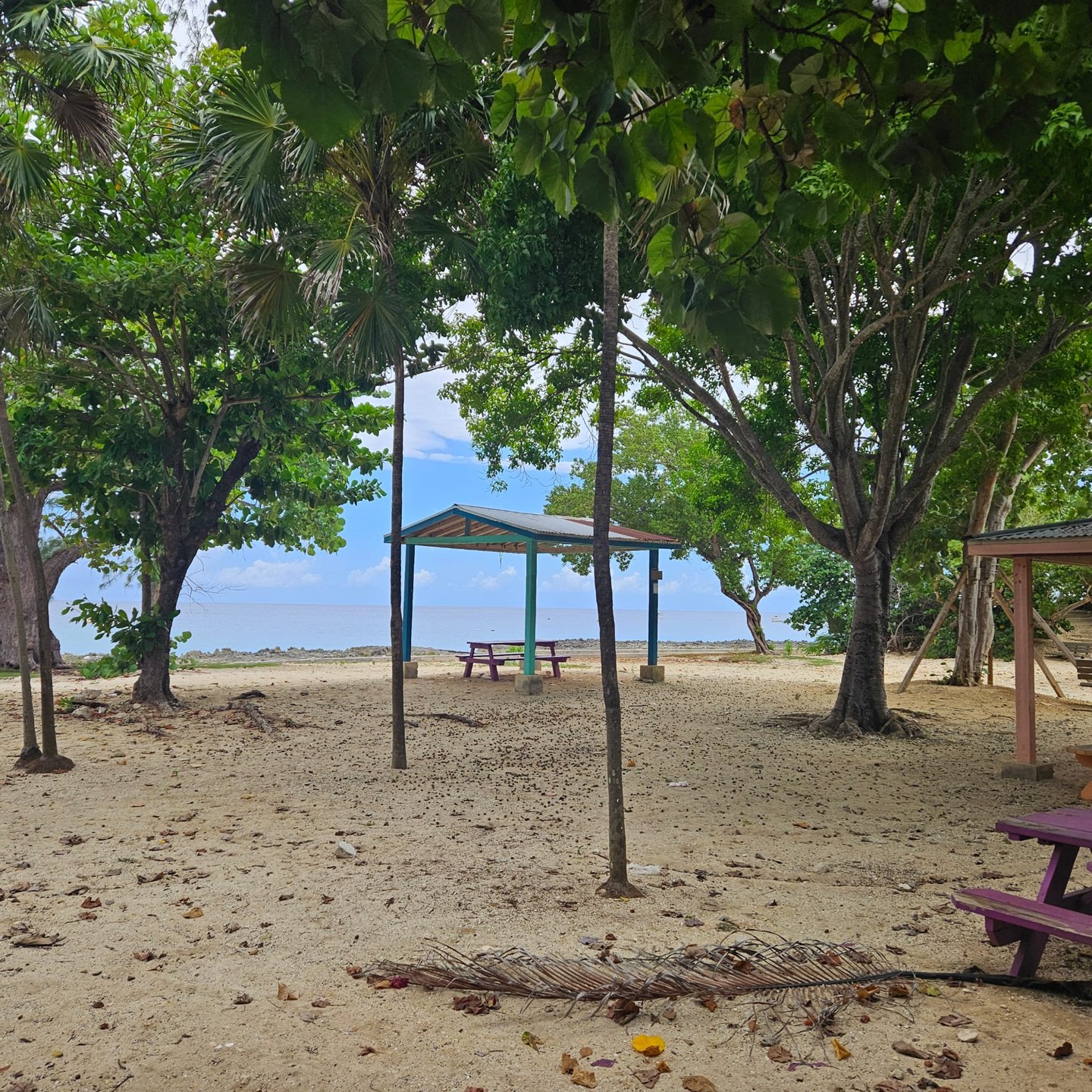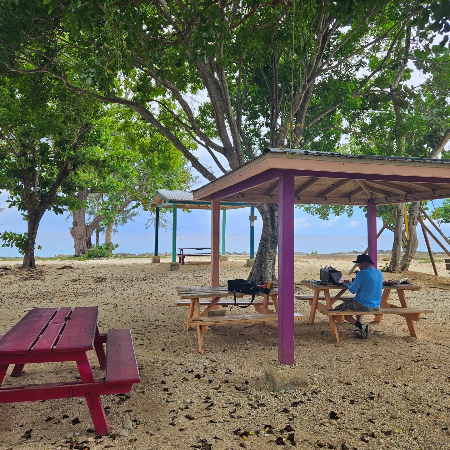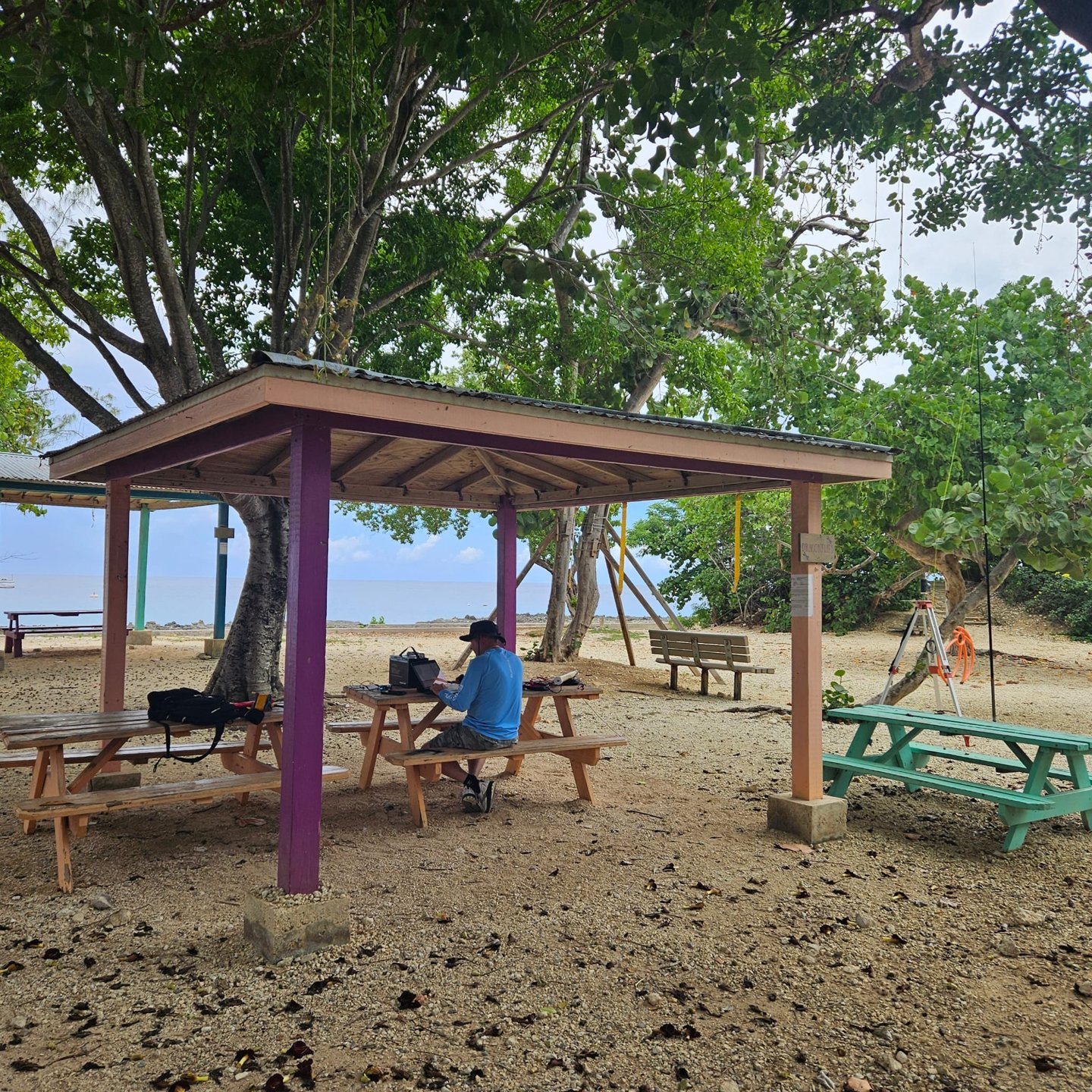 Limited parking area, plenty trees, but a Vertical Antenna is better, Cabanas with picnic tables, bring food and drink, no Restroom facilities, Grand Old House restaurant (upscale) is about a 1/4 mile South of here. Shaded spots available for setup, beautiful beach view, potential for noise from nearby water activities.